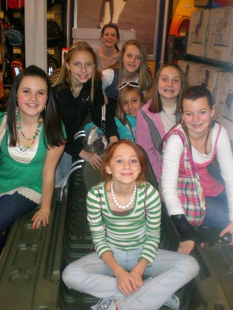 All the other group just took pictures of tires, but the eighth grade girls talked the salesmen into the picture!