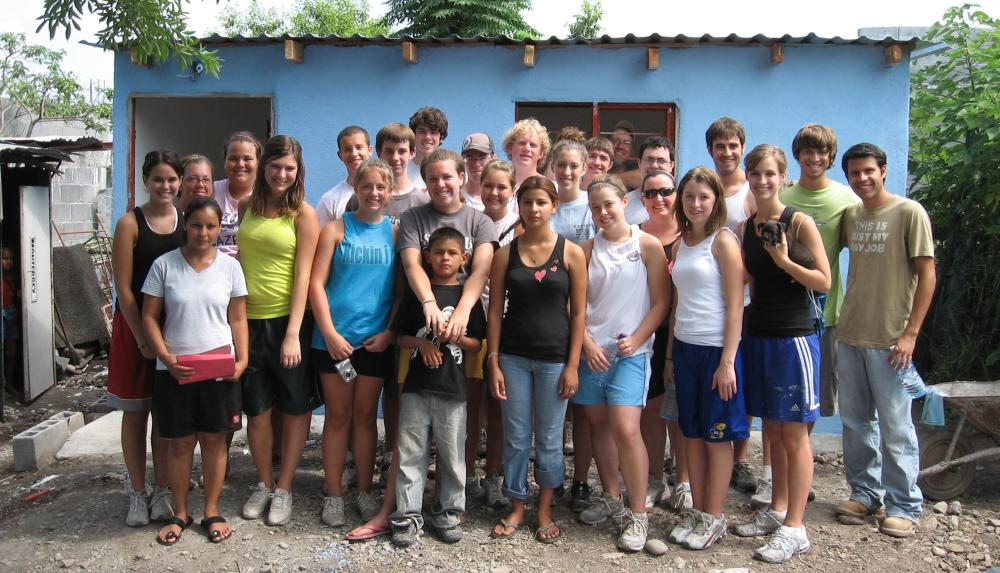 My little brother is moving to Croc, Mexico as a missionary. Of course many of you know him as a D-Now leader the past two years. While there one of his major tasks will be building houses for the people. In the picture a youth group who spent a week in Croc stand in front of one of the completed houses. The structure is a simple 16×12 concrete house with a tin roof. It has two doors, two windows, three light, and six outlets-which puts in perspective how much we have. This could be a shed in our back yard, but no of us would live in a house like this… much less be grateful to own one!