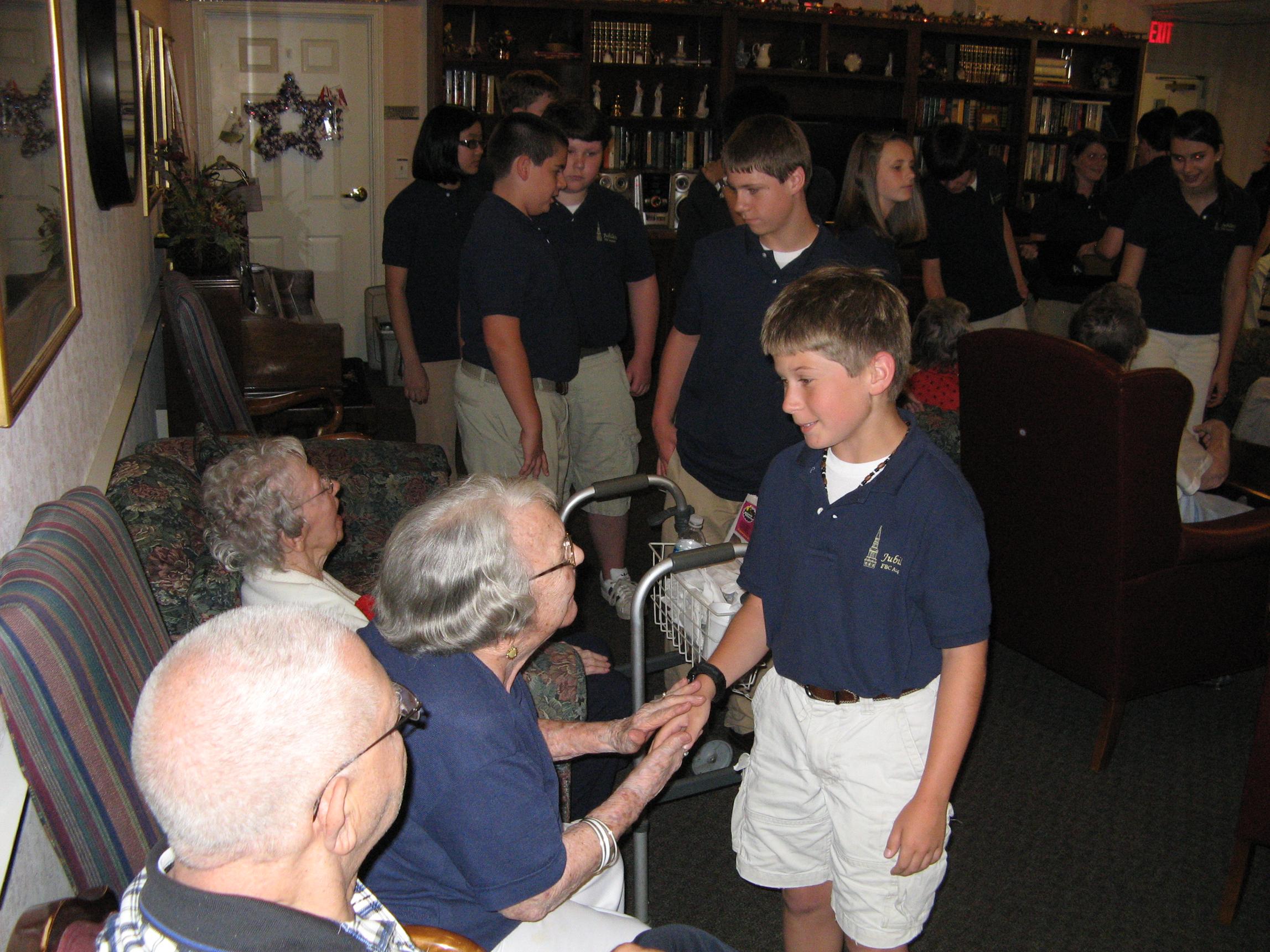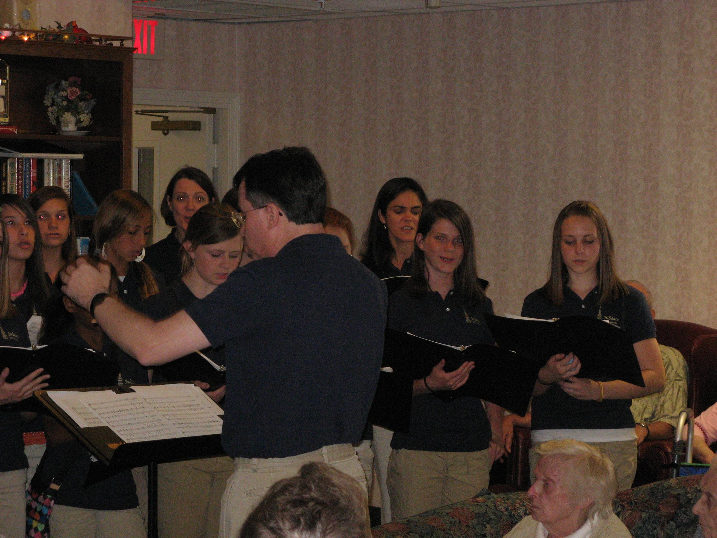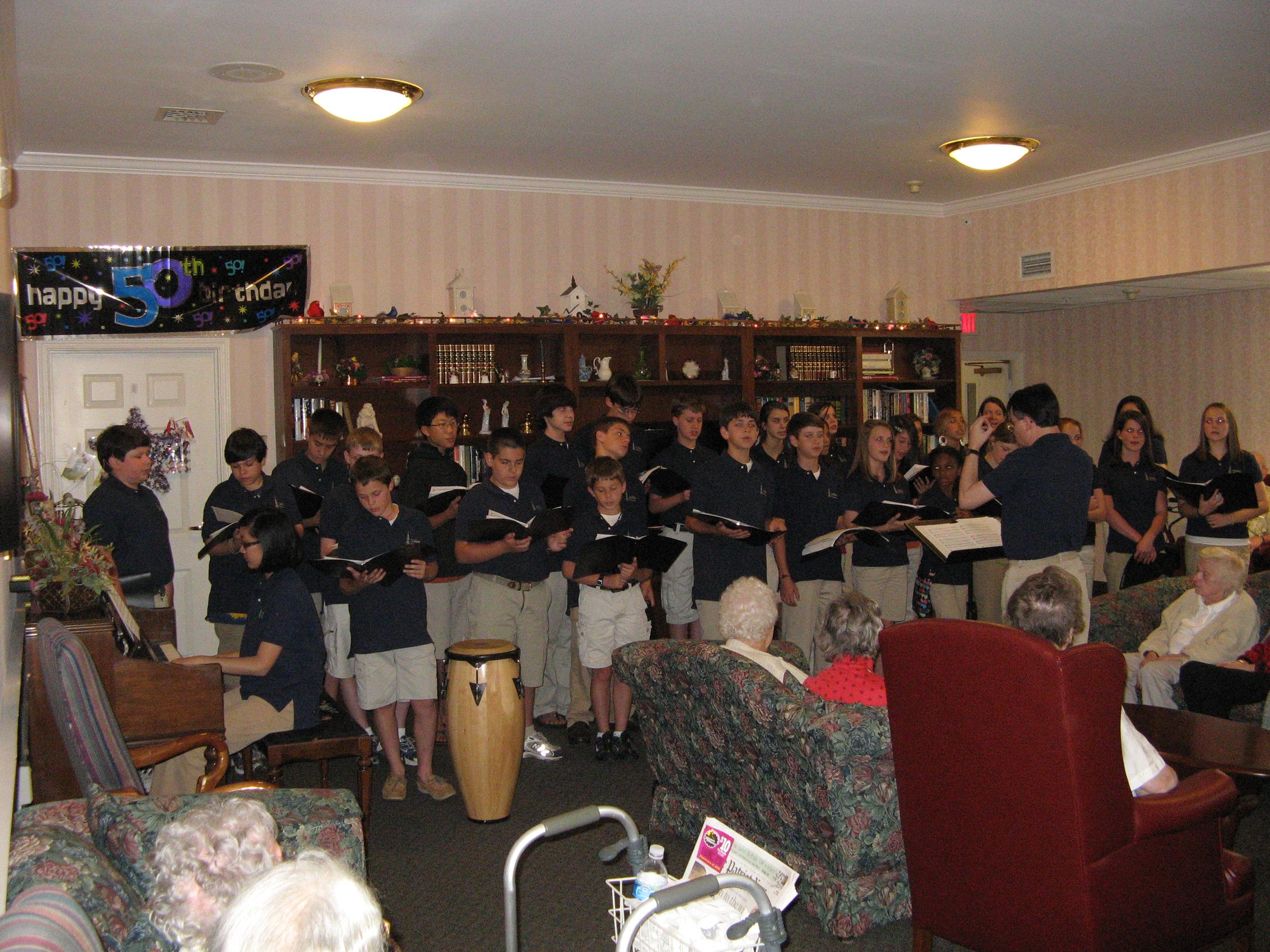 We sang for those who came to eat (there was not room inside so we sang in the hall as they lined up)