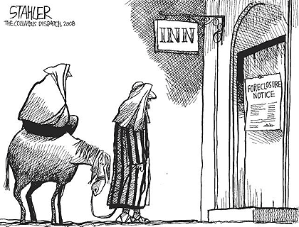 This Sunday Greg’s Sermon uses an awesome image drawn by Jeff Stahler, a political cartoonist. The title of the sermon begins the advent season theme, “When you are expecting: But it looks like the Worst” (Each week’s title begins with “When you are expecting…”). Click on the pic to enlarge, but I love the notice posted on the door!