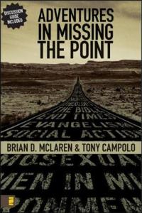Alex Doriot and I are reading the book, Adventures in Missing the Point. It is written by Brian McLaren and Tony Campolo. The authors take turns writing the chapters, but at the end of each chapter the other writer gives a critique. It is a great style for a book with this title, because right away Brian gets to hear from Tony (or visa versa) on how he missed the point! And I love it because, honestly, this is exactly what I want to do after reading a book—show how they missed the point (since I have ALL the answers!).