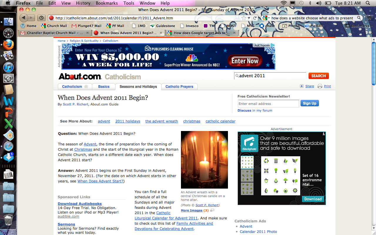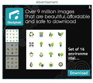 Normally I mentally block out the web ads, but the right bar caught my eye because the ad itself was personal. The silly green leaves from istock.com was an image I had viewed last week!