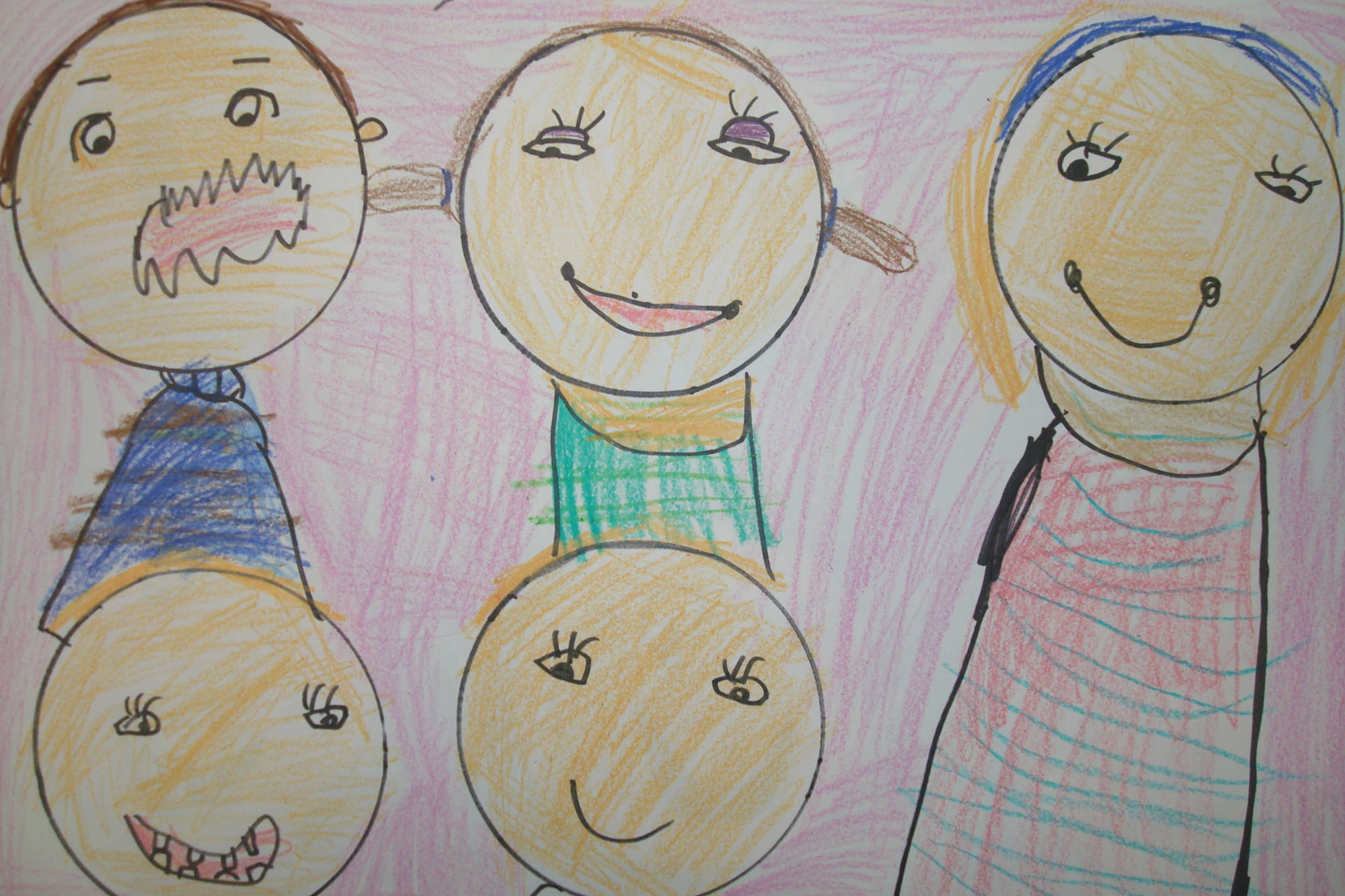 Last night Ivy brought home artwork – a portrait of the family. You can probably guess each person. The baby has a mouth full of teeth. Phoebe is happy. Ivy dominates the picture. Megan looks a little dazed (“Mom is tired”) and yes, the crazy one is me. I mentioned that I look a little angry. “No, you are just frustrated about work.”