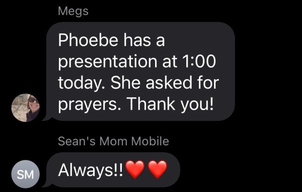 At class the next day every student would present their project. Phoebe was so worried (hence Meg’s text). When her turn came though, the film was so large it would only play the first 30 seconds… and the teacher took her written lyrics for the rest (later giving her a 100%). Everyone thought Phoebe was amazing! And she is!
